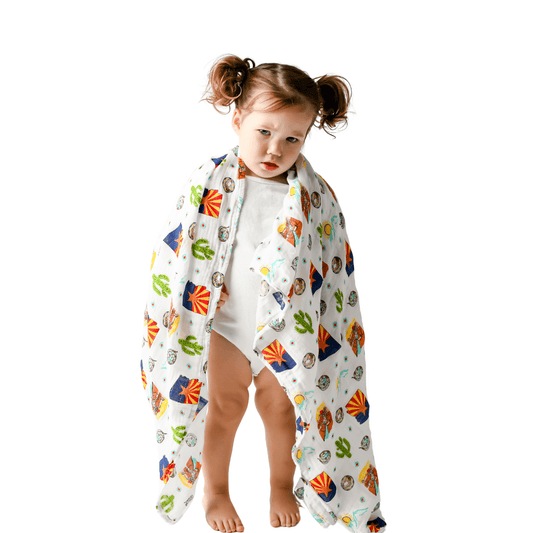 GiftSet: Arizona Baby Muslin Swaddle Blanket and Burp Cloth/Bib Combo