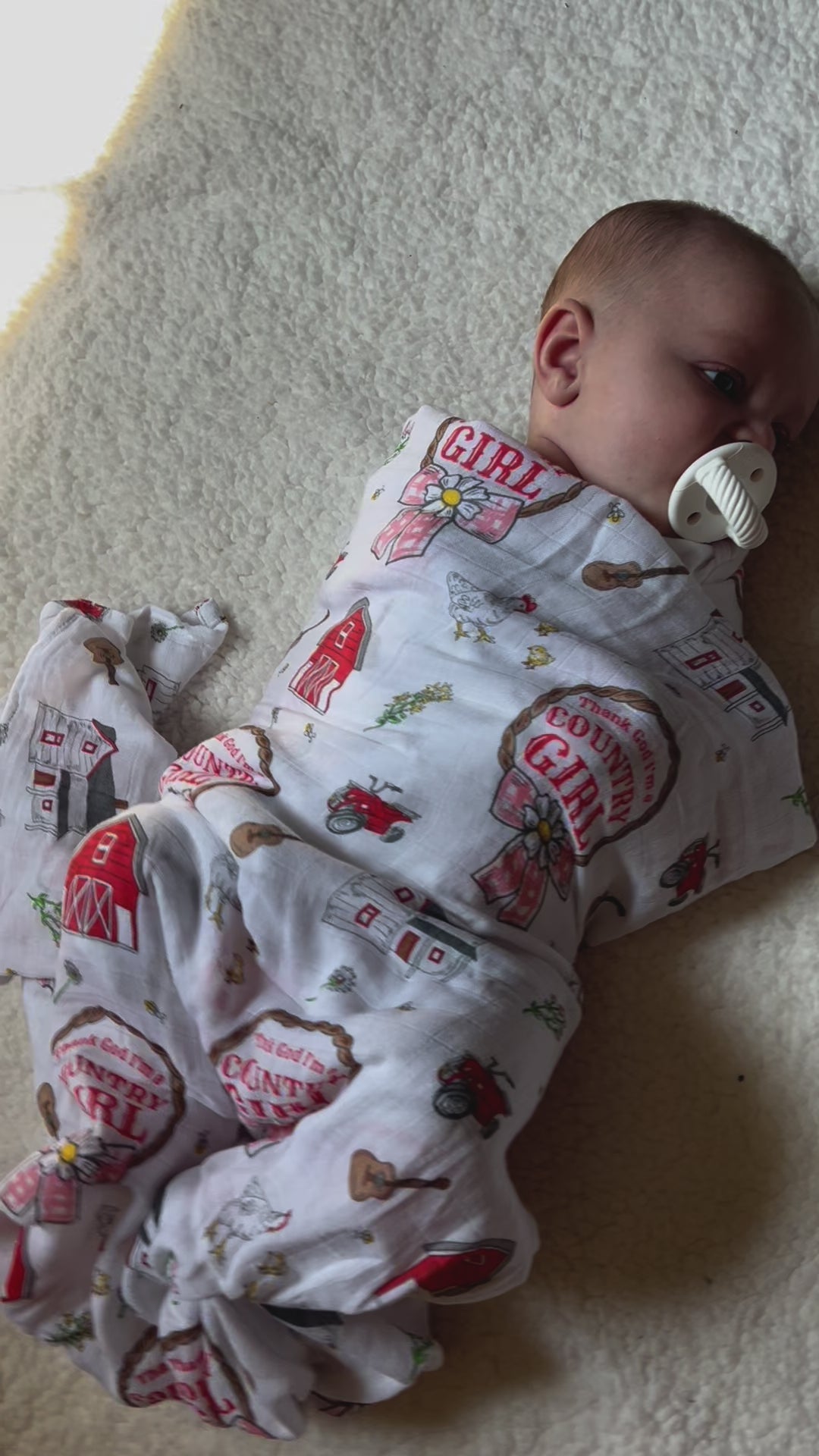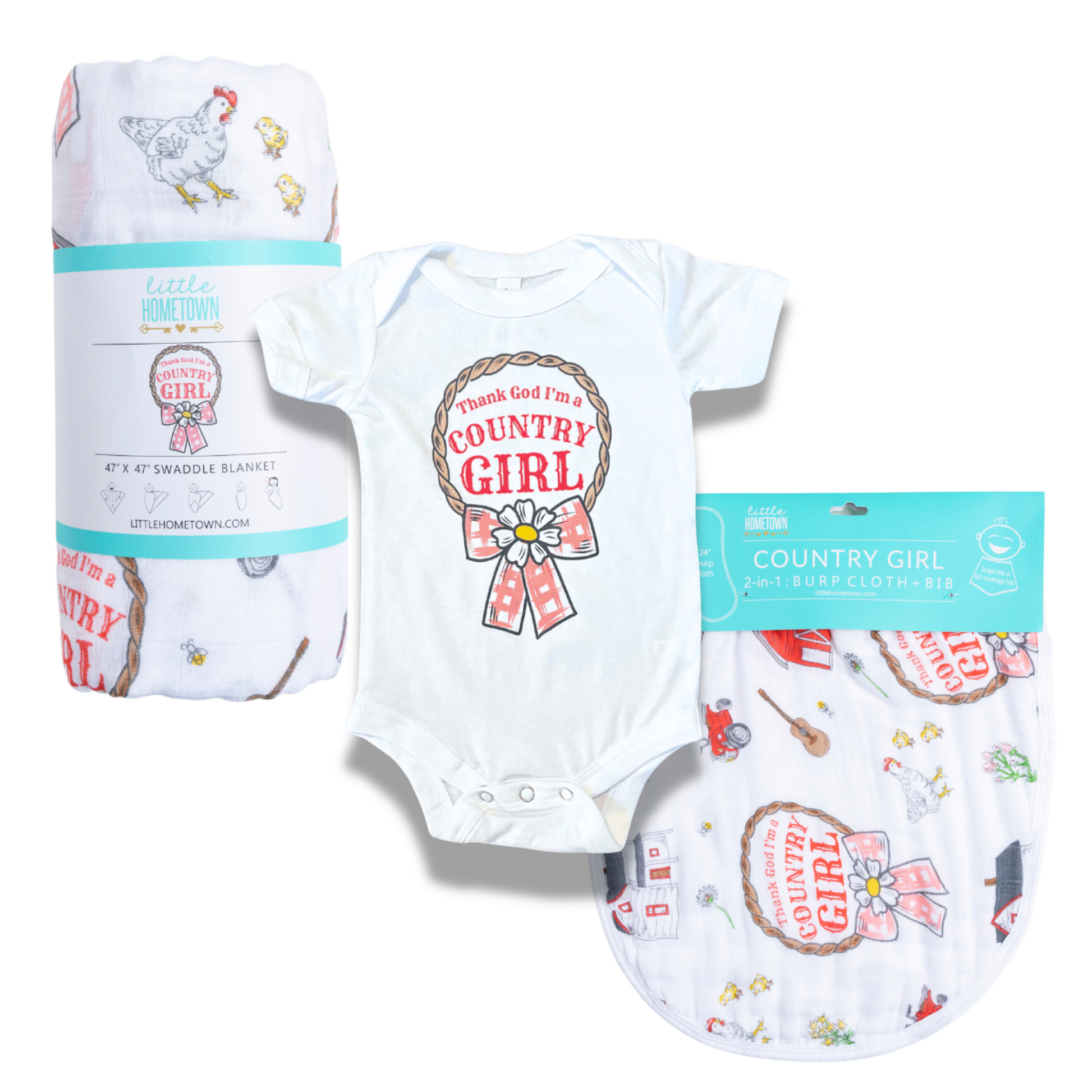 Country Girl Baby Giftset: Baby Swaddle Blanket and Burp/Bib Combo