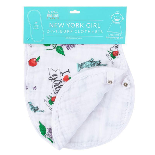 Baby Burp Cloth and Wraparound Bib: New York Boy
