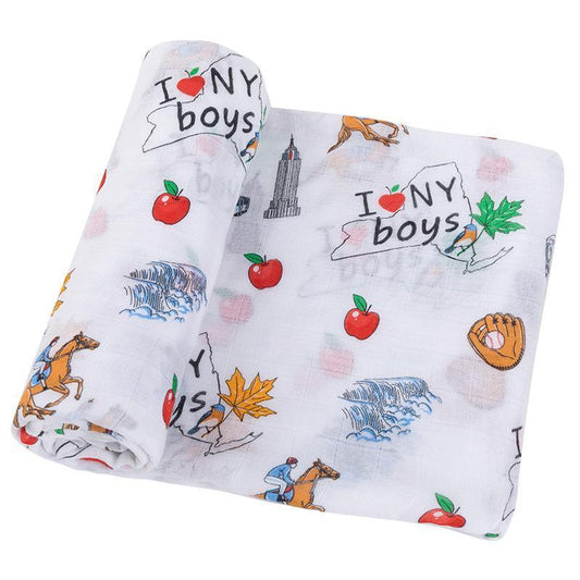 New York Baby Boy Muslin Swaddle Receiving Blanket