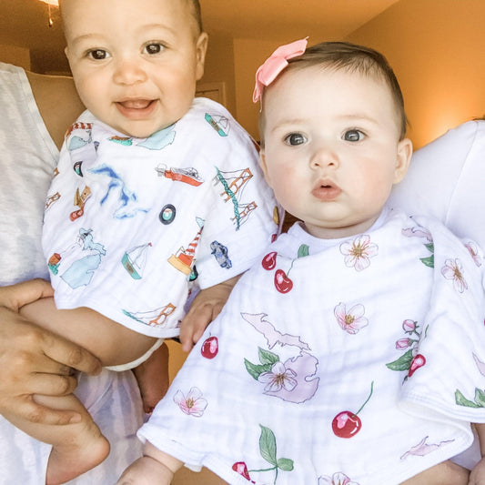 Gift Set: Michigan Baby Muslin Swaddle Blanket and Burp Cloth/Bib Combo