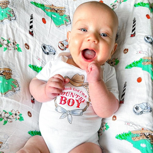 Gift Set: Southern Gentleman Baby Muslin Swaddle Blanket and Burp Cloth/Bib Combo