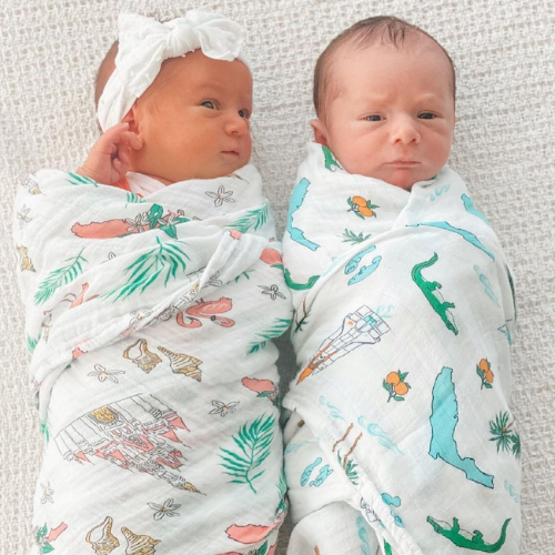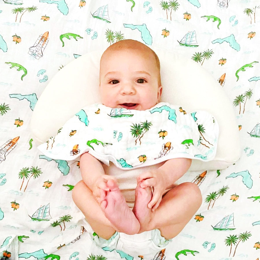 Gift Set: Florida Baby Muslin Swaddle Blanket and Burp Cloth/Bib Combo