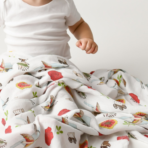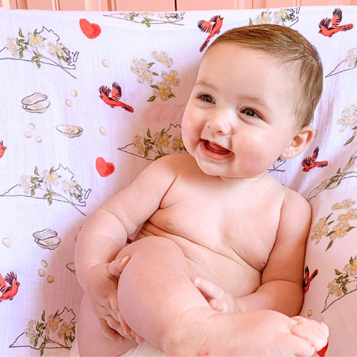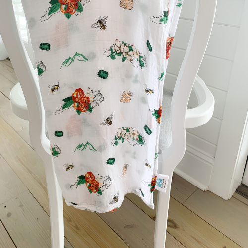 Gift Set: Virginia Baby Muslin Swaddle Blanket and Burp Cloth/Bib Combo