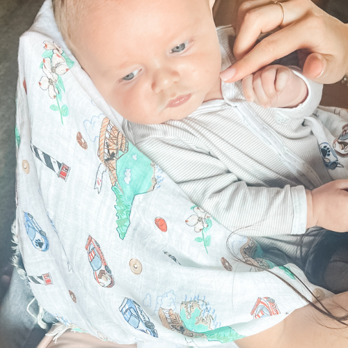 Gift Set: Seattle Baby Muslin Swaddle Blanket and Burp Cloth/Bib Combo
