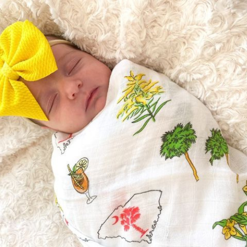 Gift Set: South Carolina Girl Baby Muslin Swaddle Blanket and Burp Cloth/Bib Combo