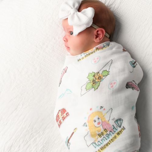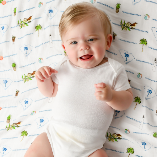 Gift Set: Southern Belle Baby Muslin Swaddle Blanket and Burp Cloth/Bib Combo