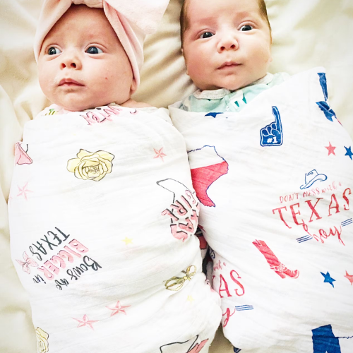 Gift Set: Texas Baby Girl Muslin Swaddle Blanket and Burp Cloth/Bib Combo