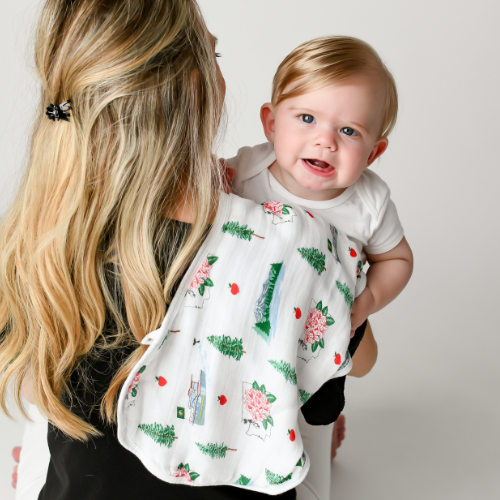 Gift Set: Alabama Floral Baby Muslin Swaddle Blanket and Burp Cloth/Bib Combo