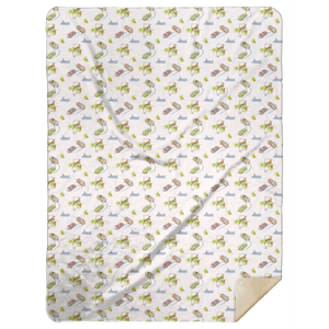 Premium Silky Smooth mink front with regional, city, state designs; Premium Fluffy Sherpa neutral back side