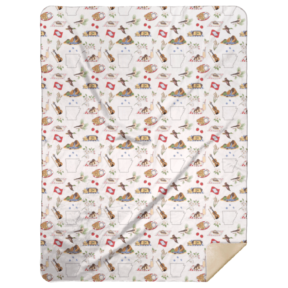 Premium Silky Smooth mink front with regional, city, state designs; Premium Fluffy Sherpa neutral back side