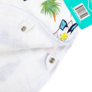 Perfect transitional item. It can be used as a burp cloth in the early months, and then it snaps to convert into a full coverage bib once solid foods are introduced. 10" x 24" Bamboo/Cotton