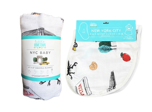 Stroll around the Upper West Side with this iconic New York City Baby swaddle. Save 10% when you order the beautiful NYC Swaddle and Burp Cloth/Bib together as a gift set!