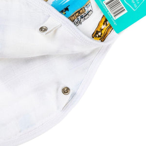 2 Our dual-action burp cloth & bib cloth. 5x as thick as our swaddles, it acts as a burp cloth when they are young, and transitions to a wraparound bib with built in snaps