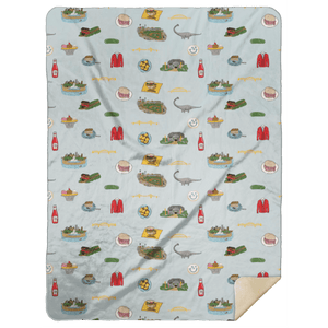 Premium Silky Smooth mink front with regional, city, state designs; Premium Fluffy Sherpa neutral back side