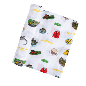 1 Our fan-favorite Pittsburgh baby swaddle. 47"x47" organic cotton & bamboo fiber muslin swaddle blanket. Super soft and super vibrant