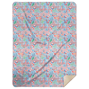 Premium Silky Smooth mink front with regional, city, state designs; Premium Fluffy Sherpa neutral back side