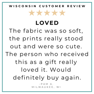 1 Our fan-favorite Wisconsin baby swaddle. 47"x47" organic cotton & bamboo fiber muslin swaddle blanket. Super soft and super vibrant
