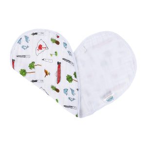 This 2-in-1 combo burp cloth/bib is as beautiful as it is functional and is a hit with first-time moms. It can be used as both an over-the-shoulder burp cloth and also as a snappable bib. Be the hit of the baby shower while gifting the sentimental love of home.
