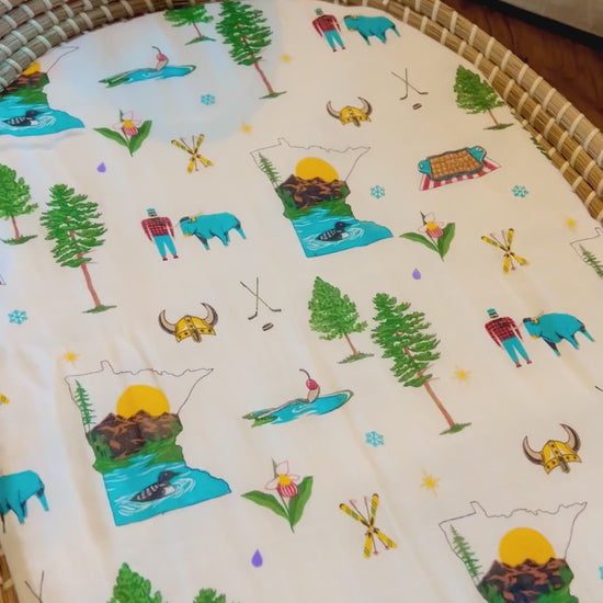 Purchased the combo for our first grandchild. The details are wonderful! Tater tot hotdish! Cross country skis! So many images to represent our great state of MN.